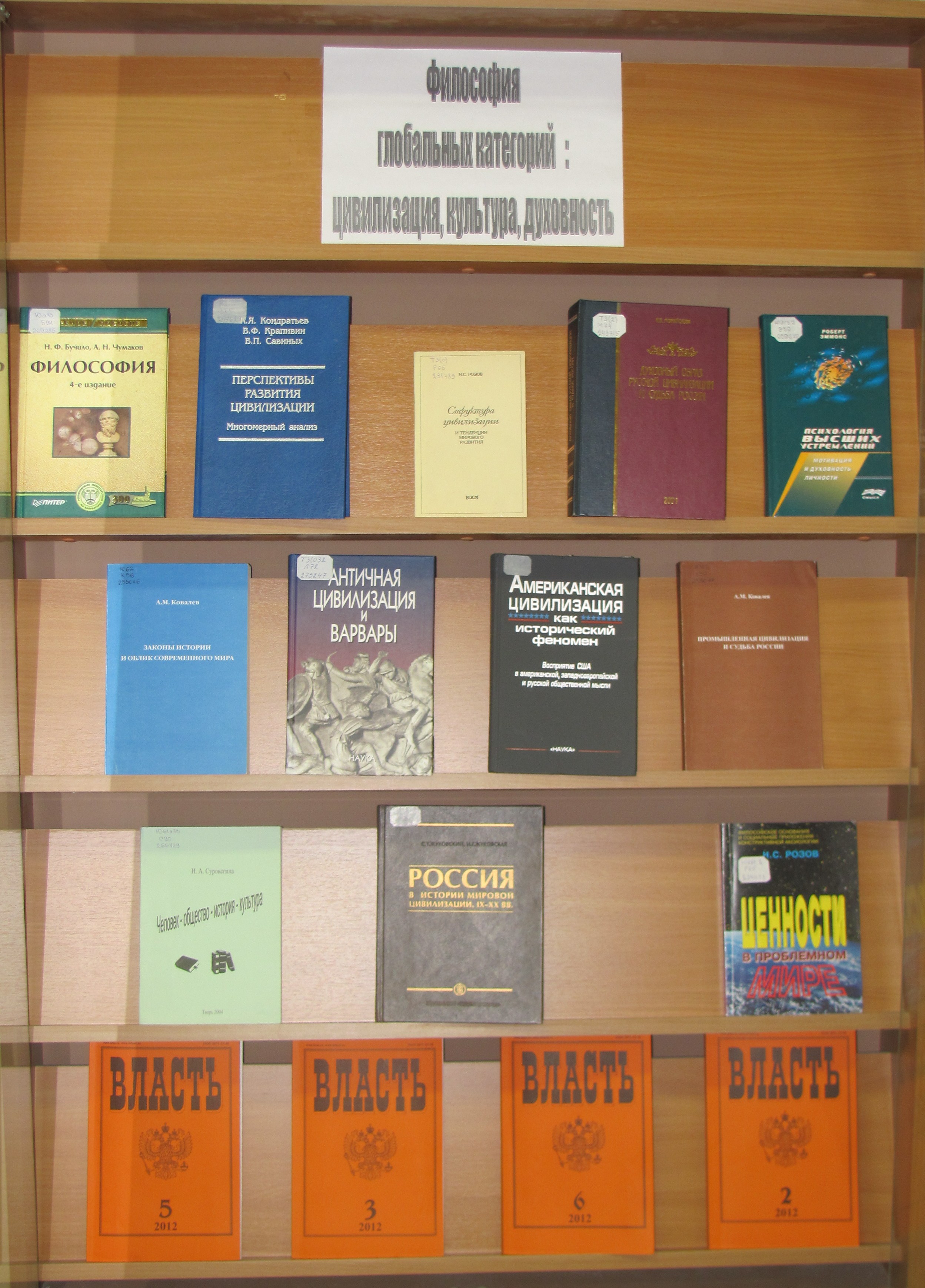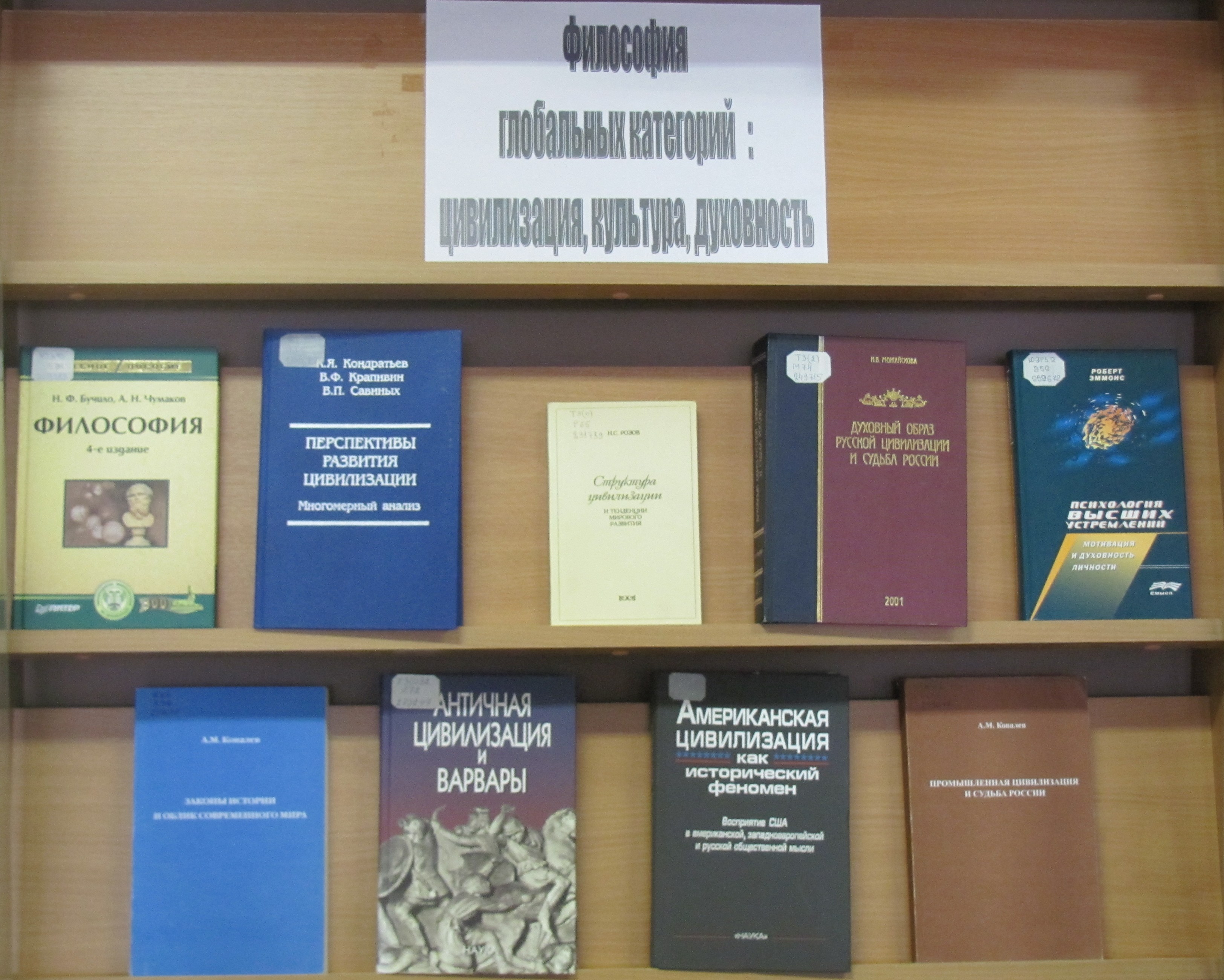 В литературе, представленной на выставке, сквозь призму философских подходов рассматриваются такие категории, как цивилизация, культура, духовность.