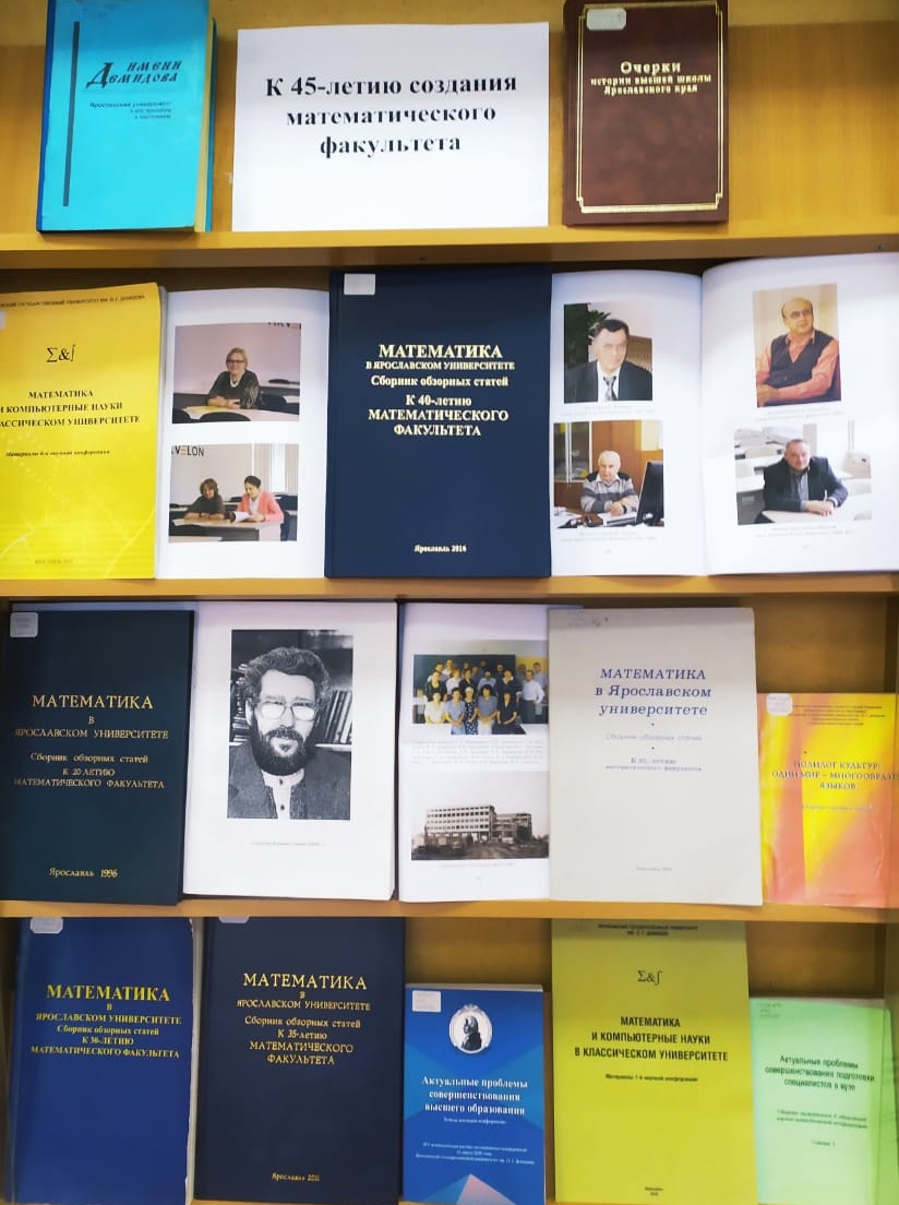 К этой юбилейной дате отдел обслуживания Научной библиотеки 7 учебного корпуса подготовил выставку, где представлены издания, посвященные истории создания и становления математического факультета.