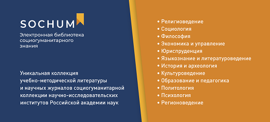 Электронная библиотечная система социогуманитарного знания SOCHUM - это уникальный Интернет-ресурс для научно-исследовательских организаций, а также учреждений высшего и среднего профессионального образования. Материалы, представленные в SOCHUM, отражают результаты современных исследований и проходят обязательную экспертизу в ведущих научно-исследовательских институтах Российской академии наук, что обеспечивает их высокое качество.